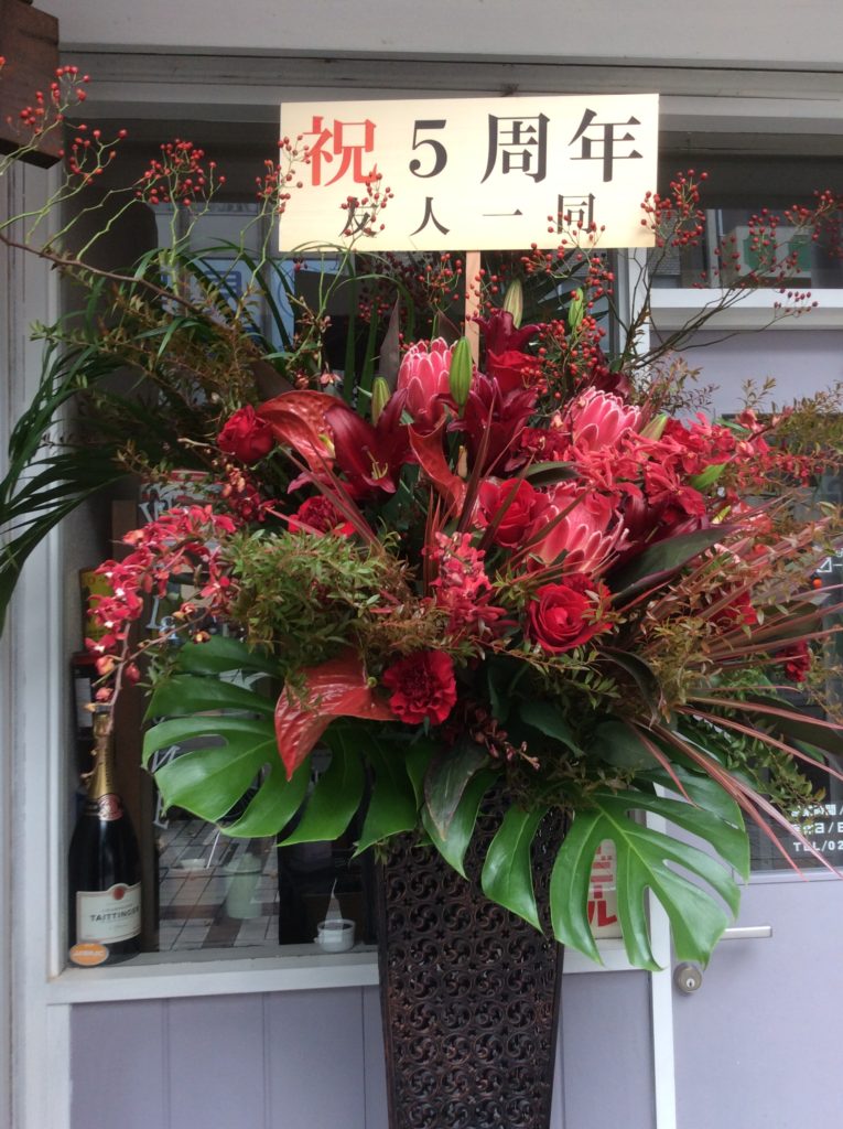 友人一同と書かれた5周年のお花が届きました! どなたからですか?と聞いても教えちゃダメ!と言われているらしく言えません。と
